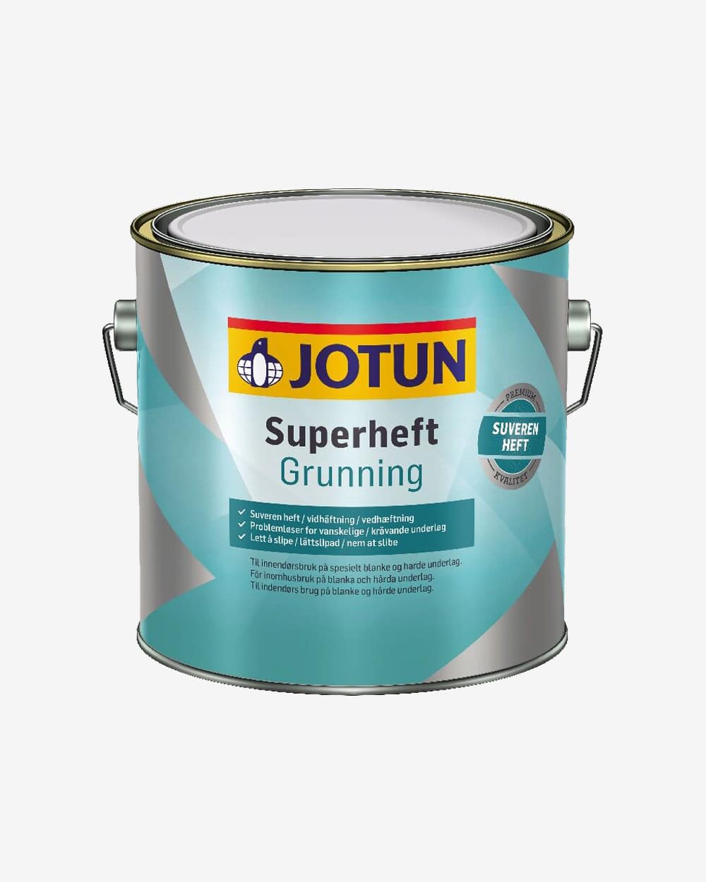 Jotun Super Hæftegrunder er en alkyd-oliegrunder med mineralsk terpentin. Denne grunder har en suveræn vedhæftning på de fleste underlag og sikrer en god base for den efterfølgende maling. Jotun Super Hæftegrunder anvendes på vanskelige, ikke-sugende unde